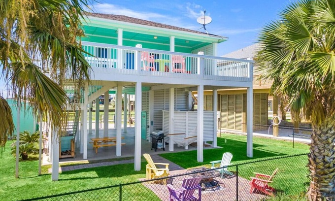 Best-rates for the Galveston house starts from $325 per night with includes TV, View, Balcony/Terrace, Bedding/Linens, Entertainment, Kitchen, Laundry, Pet Friendly, Ocean View, Fireplace/Heating, Security/Safety, Sports/Activities, Barbecue/Outdoor Cooking, Air Conditioner, Parking, Oceanfront, Wellness Facilities, Guest Services, Child Friendly, Internet StayAndPlay offers fully equipped golf villas, golf hotels, golf resorts, luxury golf cabins, and exclusive golf retreats, making it easier than ever to find your perfect golf escape — ideal for families, peaceful getaways, or pet-friendly retreats with the whole crew.