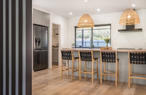 Experience the epitome of coastal style and relaxation at this private 5-bedroom retreat, nestled on lush acreage just moments away from the pristine beach beaches of the Mornington Peninsula.