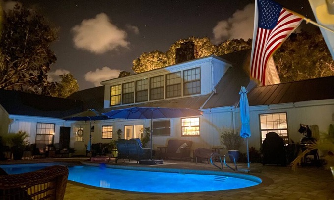 Nestled beneath the shade of majestic 40-year-old oak trees, The Manor blends timeless elegance with the relaxed beauty of Florida’s Space Coast. Our 144-foot-long home offers a stunning 19,000-gallon saltwater pool, expansive 2,200 sq. ft. paver patio, and inviting spaces perfect for both luxurious getaways and unforgettable gatherings. Whether you’re here to unwind in the Florida sun, celebrate life’s milestones, or explore nearby treasures like Cocoa Beach, Kennedy Space Center, Viera’s sports complexes, and the world-famous Port Canaveral Cruise Port — one of the busiest cruise ports in the world!