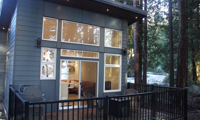 A 17 by 12 deck is located at the front of the guest house and has a Weber bbq and a natural gas fire pit. See if you can spot the bear as you enjoy the deck.