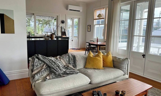 This stylish home has recently undergone a major refurbishment and is presented to a high standard for discerning guests. It has two spacious bedrooms, a designer bathroom with large shower and a fantastic living area with an open plan layout that incorporates the kitchen and dining areas and views out to the Hauraki Gulf. The property is located across the road from Narrow Neck Beach and a short stroll to Waitemata Golf Course.