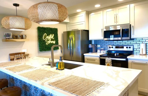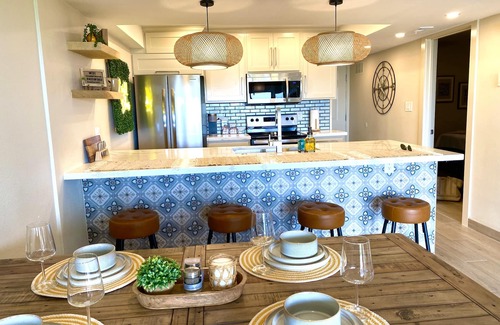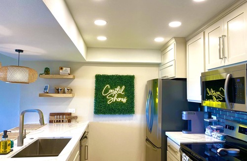 You'll LOVE how this Beachy Boho-style and centrally-located space makes you feel like you can actually touch the beach from it's huge balcony! Located on the convenient first floor, it has beautifully renovated and decorated bathrooms and a kitchen with all new appliances. Not to mention a very large SMART TV with cable and apps to watch. Walking distance to all the cool shopping and restaurant spots!