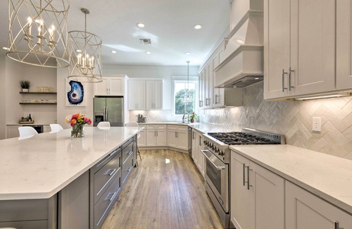 KITCHEN: Fully equipped, stainless steel appliances, large island counter w/ bar seating, wine bar & cooler, blender, Keurig coffee maker, Crock-Pot, cookware, dishware, glassware