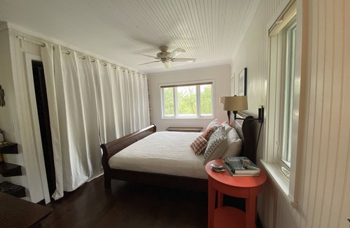 **We have an unfinished but air-conditioned first floor efficiency with a bunk bed and futon and bathroom with shower. We consider this a bonus area and not considered permanent living space.