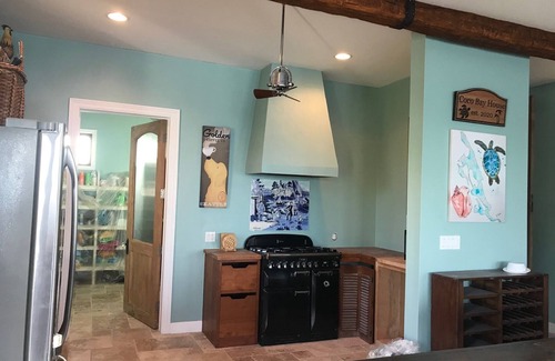 The master suite is unique! From the king sized bed and open shower concept to the views overlooking Coco Bay. There is also a private outdoor shower on the deck of the master suite. The second bedroom has a queen bed and a twin day bed with a twin trundle bed. This bedroom has a full bathroom en suite. The third bedroom has 2 full size beds and a triple twin custom bunk bed. This fun, sea creature themed room has a full bathroom en suite. The huge eat-in kitchen has a table that will seat 8, plus an island that will seat 6. More table seating is available outside in the screened in porch.