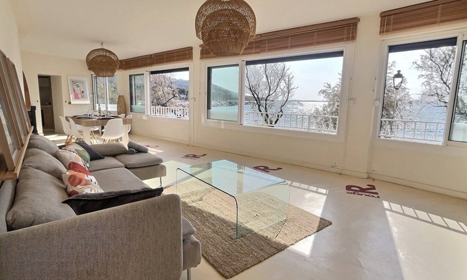 Exceptional waterfront stay – 130 m² fully air-conditioned apartment. Treat yourself to a special getaway directly on Peno Beach. No need for a pool or garden: just a few steps to dive into the Mediterranean. The beach becomes your terrace, your relaxation area.