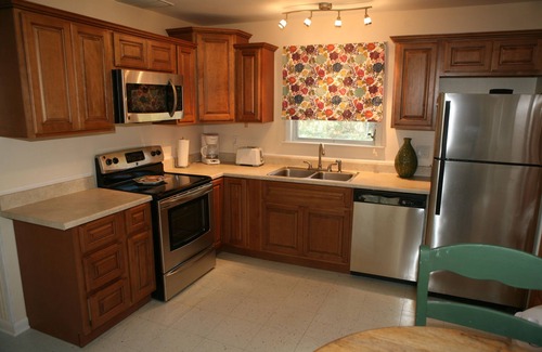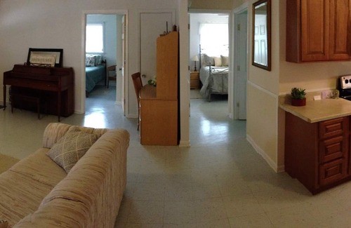 Two bedroom, 1 bath open floor plan. Ground-level and pretty, fenced-in yard. Perfect for guests with pets!