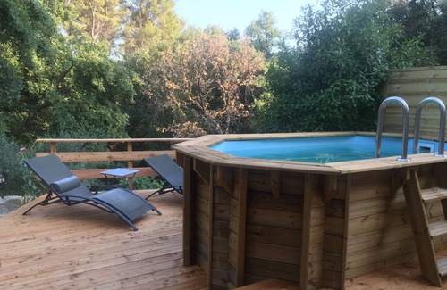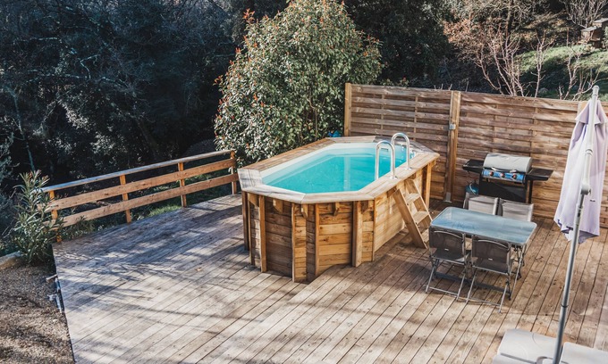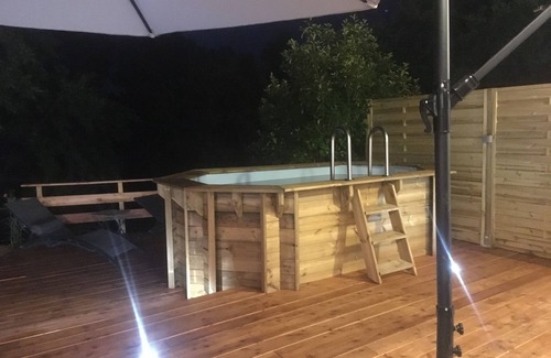 It is equipped to live a real moment of relaxation and intimacy: bed 180 * 200, balneo 2 places, pool 2 * 3m, wood terrace overlooking the woods, not to mention the classic equipment (kitchen with washing machine). dishes, washing machine, oven, microwave, hob, TV, bathroom with shower cabin ...)