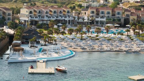 Offering spacious rooms with a private balcony, this hotel is surrounded by palm gardens along the Aegean Sea. The complex features extensive dining facilities, a spa and an outdoor pool. With free WiFi and an LCD TV, all air-conditioned rooms at Solto Alaçati Hotel are elegantly decorated with parquet floors and light fabrics. Each room features a mini-bar and a modern, private bathroom. Freshly baked bread and local olives are served at the hotel’s Alaçatı-style breakfast. Guests can enjoy Mediterranean and Aegean dishes indoors or out on the terrace at the L’olive Restaurant. There is also a snack bar. Refreshing drinks are offered at Pupa Bar, Thematique Bar and Lobby Bar. After a relaxing aromatherapy massage, guests can make use of the Solto Alaçati’s sauna with sea views, Turkish bath and indoor pool. On a chilly day, the lounge with its fireplace offers a pleasant setting for a drink. Free on-site parking is available. This hotel is located 5 mi south of Cesme and 1.9 mi from the center of Alaçatı. İzmir Adnan Menderes Airport is 56 mi away, and transfers as well as car rentals can be arranged upon request.
