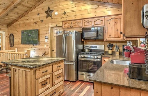 The owner bought the cabin to give his Siberian husky Colby a safe, fun place to run free and enjoy nature, and you're invited to do the same with your canine best friends (as long as they're flea-free). Enjoy the fresh mountain air as you relax in the incredible outdoor living space, with its roomy decks, ample seating, and screened-in porch that features a wood-burning fireplace and 55” flat screen TV. There's a gas grill, swing chairs, a hot tub with room for six, and down below, a fire pit, perfect for roasting marshmallows and making s'mores.