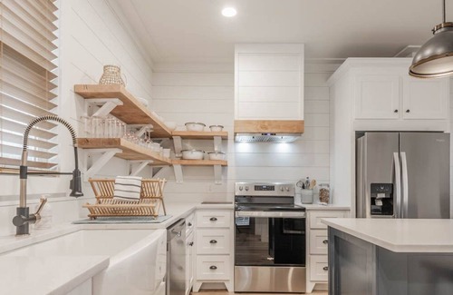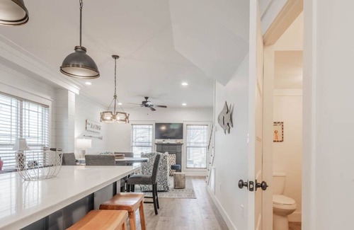 Come enjoy a relaxing stay at Veteran-owned Colonel’s Cove! This charming lake property is the perfect place to stay when you are traveling for a fishing trip, sporting event, family gathering, or just looking to get away and relax. This beautifully furnished home has 2 bedrooms, each with a king bed and private bathroom. It boasts an open floor plan with a well-equipped kitchen, quartz countertops, large screened-in porch complete with an electric fireplace, large bedrooms and exceptional lake views from the covered screened porch and master upper deck. Colonel’s Cove features complimentary Wifi and four Smart TVs, each with Roku Guest streaming. Enjoy River Rocks Plantation community amenities including fire pits, heated pool and pavilion, and access to a boat ramp and fishing directly across the street. Colonel's Cove is centrally located in beautiful Guntersville, close to local shops, grocery stores, highly rated restaurants, outdoor adventures, Guntersville State Park, and the Sand Mountain Park and Amphitheater. This cozy lake cottage has everything you need for a relaxing getaway to one of Alabama’s most beautiful resort towns!