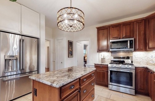 My 100 year old home first owned by Colonel Howard E Miller is a regal gem full of charm. Three stories including a finished attic that we call the tree house and an unfinished basement make this the tallest home on the block. You’ll decompress in the peaceful bubble of my neighborhood hidden from major street noise yet close to all interstates, downtown and nightlife. The rare solitude yet convenient location is thanks to being on a no outlet street that overlooks the famous Audubon country club and golf course. Each bedroom features a queen bed, ensuring a comfortable stay for all guests. With an open kitchen full of all the cookware you could need, cooking a savory brunch or a KY HotBrown is easy and entertaining. Opening the Dutch door while you’re grilling steaks from the local butcher (Frank's Deli) nearby makes asking your friends how they want their meat cooked a breeze. The 3rd floor, lovingly called the tree house, offers an additional hangout space and includes a cozy day bed for extra sleeping arrangements. Beware, once you lay down on its cloud-like cushions you might never leave! Sit by a cozy fire in my private backyard in the Adirondack chairs as you share stories of your unforgettable day at Churchill Downs. We look forward to welcoming you to our place.