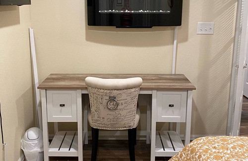 Enjoy your own private building—the casita. Enjoy a walkway to the Colorado River and a private hot tub. This casita is set up for four adults with two private rooms. Guests can access the property around the Casita and the river beach area. Guests have a private entrance to the casita. Owners stay in the main house, disconnected from the casita.