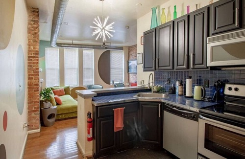 Colorful & Quirky 2-BR Loft w/Private Deck | MICA, JH & UMMC is located in Downtown Baltimore. Colorful & Quirky 2-BR Loft w/Private Deck | MICA, JH & UMMC provides accommodation, featuring Guest Services, Internet, Laundry, among other amenities. This Apartment features Guest Services, Internet, Laundry, to make your stay a comfortable one.