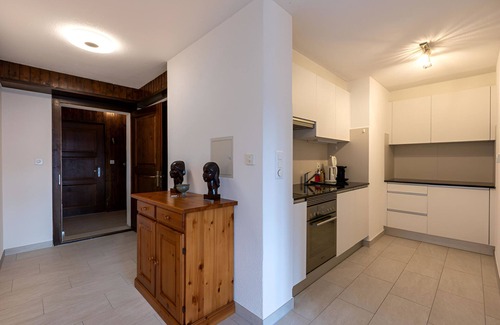 "Comère 6", 2-room apartment 55 m2 on 3rd floor. Comfortable and tasteful furnishings: entrance hall. Living/dining room with dining nook, cable TV and hi-fi system. Exit to the balcony, south facing position. 1 room with 1 french bed (160 cm, length 200 cm). Exit to the balcony, south facing position. Kitchenette (oven, dishwasher, 4 ceramic glass hob hotplates, electric coffee machine, Capsules for coffee machine (NESPRESSO) extra, raclette grill, fondue Set (chinoise)). Bath/WC. Balcony 10 m2. Very beautiful view of the mountains and the valley. Facilities: iron, hair dryer. Internet (WiFi, free). Parking space n 6. Please note: non-smokers only.