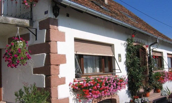 30 minutes Strasbourg, Colmar 20 minutes. Edge of forest, near ski resort. Gîte "Les Floralies", apartment 2 / 8personnes: beautiful living room, lounge with convertible, 1 large kitchen and large terrace, 3 double bedrooms, 1 bathrooms, 1wc. Many activities, hiking trails .. (Possibility other apartments). Weekend possible outside school holidays.