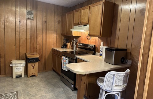 Perfect for entertaining and relaxing, the back deck includes 6 chair. A gas grill along with picturesque views of the surrounding forest .Deers will come often and sneak on you with their curiosity which definitely make you exited ! On Backyard the deck arranged with patio chair, table , umbrella, hammock and fire pit will make you feel a fire camp night !