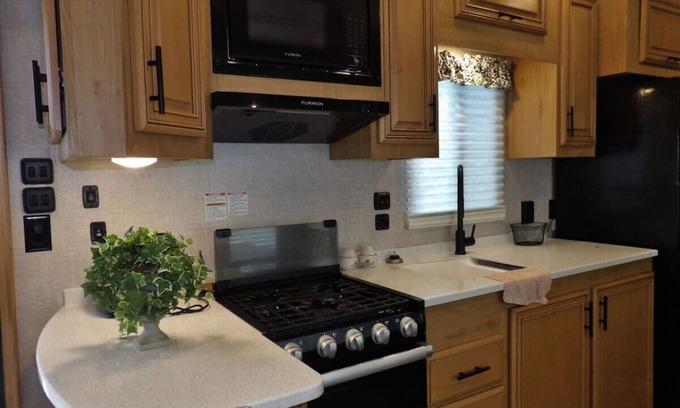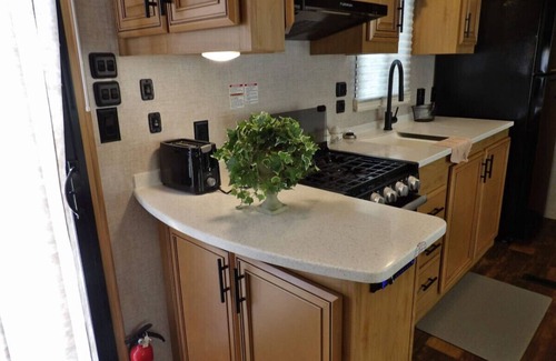 Escape to the tranquility of the countryside in our cozy park model camper. This charming rental offers the perfect blend of comfort and simplicity. The camper is thoughtfully equipped with all the essentials for a comfortable stay, including a well-appointed kitchen, a cozy living area, and a comfortable sleeping space.