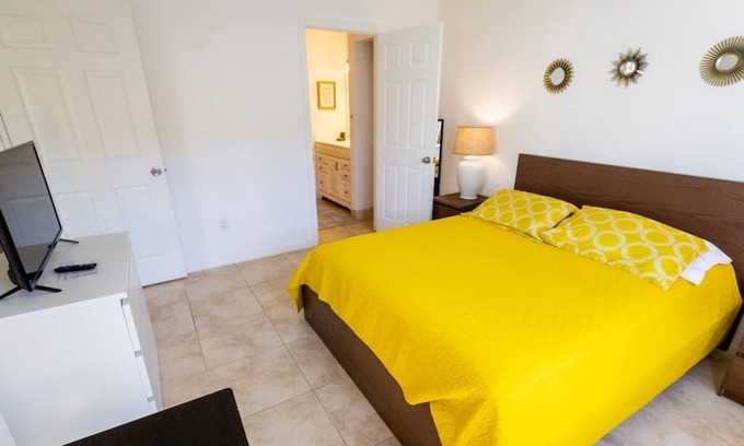 The apartment is located in a quiet neighborhood in Mission Bay in West Boca Raton. It's a residential area but very close to many shops and restaurants. (Publix, Fresh Market, Starbucks, Blaze Pizza, Best Buy, Home Depot, Bed Bath and Beyond, Panera Bread, LA Fitness, Pure Barre, Padrinos Cuban restaurant, IHOP, McDonalds, Regal Shadowood Movie Theater (and many more) are all in the in the intersection. Lots of lakes and shaded areas for a nice walk about the neighborhood. Beautiful sunsets and sunrises over the lakes. Close to Osprey Golf Course (no membership required) and South County Park.