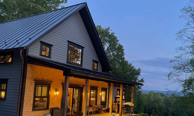 The house is surrounded by dense hardwood forest and offers stunning views of mountains to the south and the west. The vegetable garden is planted mostly with herbs, to help with fresh cooking, and there is a small orchard with heirloom apples, next to a watermelon and pumpkin garden. There are thousands of feet of stone walls and miles of hiking and biking trails - all made by hand by the homeowner.