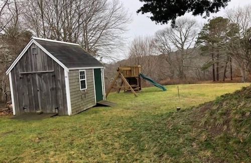 This 1934 Cape home, named “Sunbeams,” is a quaint home away from home. Sunbeams is a short distance to town with easy and quick access to shops, galleries, restaurants, and Wellfleet harbor while still offering plenty of space to breathe and relax away from the bustle. This home truly offers the best of both worlds: just a short distance to the center of town, for some excitement or enjoy a leisurely day tucked away in the hammock. Enjoy any or every meal of the day at the outdoor dining table on the deck. Run and play with the kids in the large yard inclusive of a lovely swing set or in the playhouse, and afterwards enjoy a relaxing rinse in the newly renovated outdoor shower – a staple of summertime on the Cape.