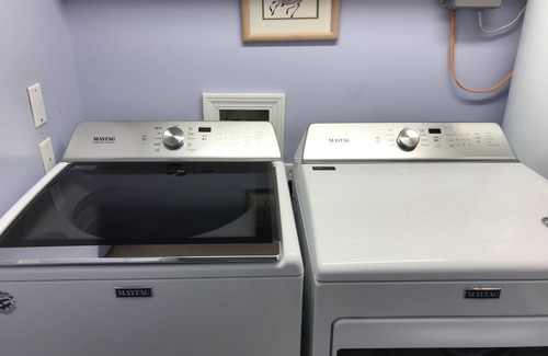 There are floor to ceiling glass walls on both floors to let all the sunshine and awesome views in. There is high speed internet, cable with HBO and two HDTV with Xfinity voice control remotes. one in living room and one in master bedroom, Central AC, washing machine and dryer. The kitchen is well equipped.