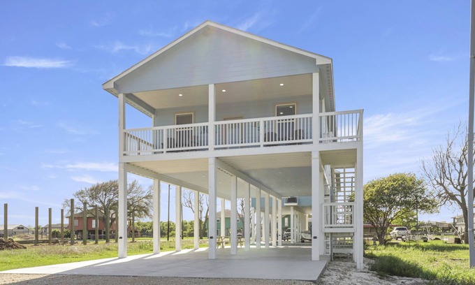 Welcome to C Palace, your serene coastal retreat nestled just minutes away from sandy beaches and shopping destinations. This charming rental offers the perfect blend of tranquility and convenience with access to the best of the area. Step inside this delightful abode and discover 3 inviting bedrooms, each thoughtfully designed to provide comfort and relaxation after a day of seaside adventures. With cozy furnishings and ample space, these bedrooms offer a peaceful haven for guests to unwind and recharge. The fully equipped kitchen is a culinary haven, boasting modern appliances and ample counter space while opening to your living area making this the perfect place to gather and entertain. From sunrises over the Matagorda Bay to evenings down below enjoying the BBQ pit and patio games, this beach oasis is sure to check all your boxes. C Palace comfortably accommodates up to eight guests, making it ideal for families, friends, or couples seeking a memorable beach getaway. Additional amenities include complimentary Wi-Fi, Roku TV, beach gear, and more, ensuring a hassle-free and enjoyable stay. Beyond the comforts of C Palace, guests will find themselves just moments away from the sun-drenched shores of the beach, where endless hours of relaxation and recreation await. Explore the nearby shopping destinations, offering a diverse array of boutiques, and eateries to delight every taste and preference. Experience the ultimate beach retreat at C Palace, where coastal charm meets modern comfort and convenience. Book your stay today and discover the beauty and serenity of this idyllic seaside escape.