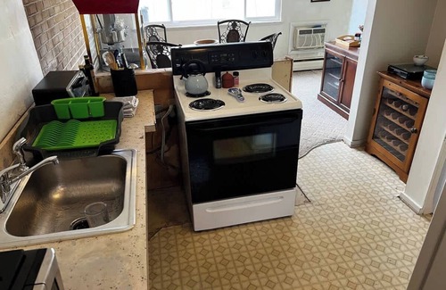 FULL DISCLOSURE: The kitchen is under renovation, but there is a refrigerator, sink, stove, microwave, toaster oven for guests to use. ALL photos are current.