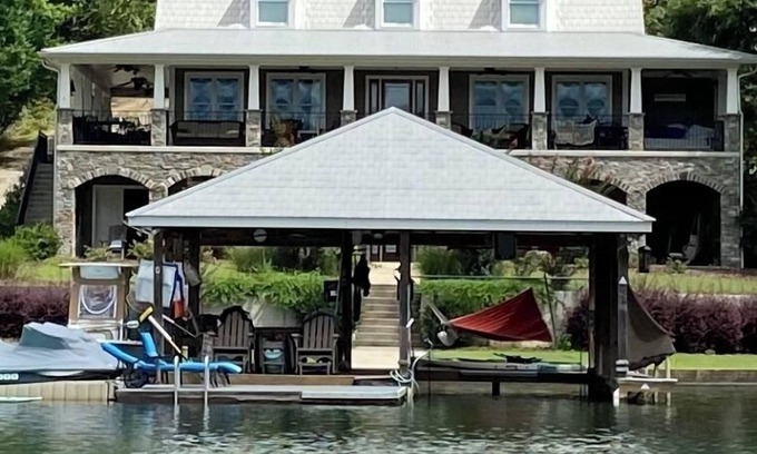 Casa Bear located in a quiet cove near the center of Lake Martin with year round water. Come bring the family and unwind in the peaceful atmosphere on the charming wrap around porch. This home has a cabin feel with all the space to spread out with two separate living areas and two kitchens for larger families. The main floors features an open concept kitchen and living area. The kitchen includes a double oven and an under counter icemaker. There are 2 full size refrigerators, one in the kitchen on the main floor and one in the kitchen downstairs. There is one master bedroom and bath on the main floor as well as a half bath. The upper level has another master and en suite as well as two other bedrooms and a bunk room. The lower level features a living space, another bedroom and bath, and kitchenette. All bedrooms have lake views except the bunkroom. The most outstanding feature of this house is the front porch with wrought iron rails. This is a tremendous place to enjoy breakfast or dinner on the porch. There are two tables on the porch. One seating six and one seating four. The house is situated so that there is never full sun on the porch. Take an afternoon nap on the swinging porch bed nestled in the shady corner of the porch or play checkers/chess.