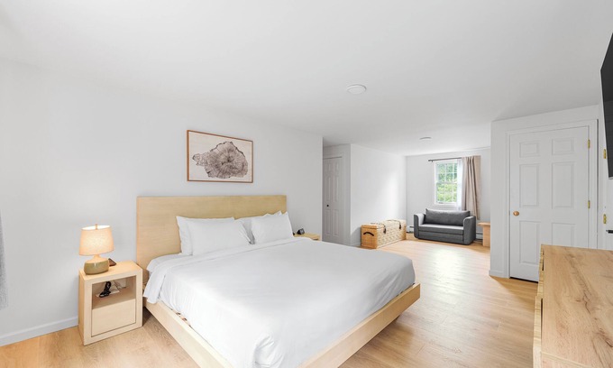 Bromley Suite is a second floor unit featuring two bedrooms, each with king beds and private bathrooms. The larger of the two bedrooms also provides a twin size sleeper sofa, ideal for younger travelers. This unit is complete with luxury bedding, dining area, mini-fridge, Keurig coffee maker, and flat-screen web-enabled TV with complimentary access to Disney+, Hulu, and ESPN+. Bromley Two Bedroom Suite is pet friendly.