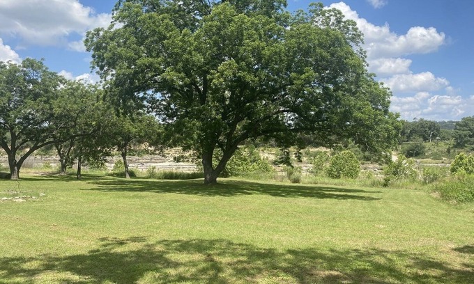 There is a large spacious, pecan tree shaded yard, perfect for a back yard BBQ or just to sit and relax in the shade and listen to the water roll over the rocks of the river. Jackaroo River Cottage is just minutes from downtown, making a perfect location for quick trips to town, or to enjoy a day shopping the square.