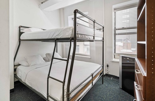 The room comes with a bunk bed that has a full size bed over queen size bed. Its most comfortable for 3 adults but can sleep 4!
