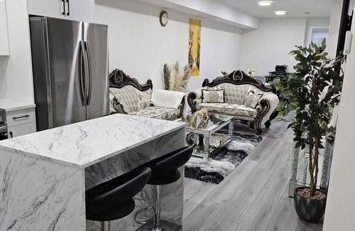 Charming 2-bedroom in North East Calgary (with big 2 Kings bed, separate entry and separate heating) Legal basement suite , 11 min drive to Calgary international airport, offers comfort and tranquility. Home away from home with fabulous furnishings, peaceful and family friendly environment.