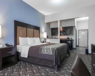 The Comfort Inn & Suites I-10 Airport hotel in El Paso, TX is conveniently located just one mile from El Paso International Airport. This El Paso, Texas hotel also offers easy access to Downtown El Paso, Fort Bliss and Juarez, Mexico. Other nearby attractions include El Paso Zoo, Bowl El Paso, Sunland Park Racetrack, La Vina Winery Business travelers will appreciate on-site business center conveniences like a computer with Internet and access to copy and fax services. There is a meeting room available, with the hotel able to accommodate up to 20 people for banquets and 15 people for conferences. Other amenities include free airport transportation, free hot breakfast, free wireless high-speed Internet access, free daily newspaper All rooms offer a flat-screen television with cable, pillow top mattress, free local phone calls, hair dryer, desk, iron and ironing board. Some rooms feature a refrigerator, kitchen facilities and sofa sleeper. Guest laundry service is available, as well as plenty of bus, car and truck parking. Pets are welcome for a small fee. The Cielo Vista Mall and Fountains at Farrah are near the property.