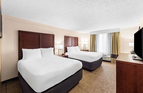 Comfort Inn & Suites Heath - Newark South offers 63 air-conditioned accommodations with safes and complimentary newspapers. Beds feature down comforters and premium bedding. A pillow menu is available. Televisions come with premium cable channels. Refrigerators, microwaves, and coffee/tea makers are provided. Bathrooms include bathtubs, complimentary toiletries, and hair dryers.