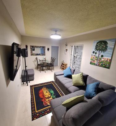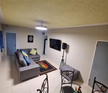 Comfortable 2 bed Apartment offers accommodations in Ocho Rios, a 11-minute walk from Sunset Beach. This apartment provides free private parking, full-day security, and free Wifi. The apartment features an outdoor swimming pool and private check-in and check-out. The air-conditioned apartment consists of 2 bedrooms, a living room, a fully equipped kitchen with an oven and a coffee machine, and 1 bathroom with a walk-in shower and a hair dryer. Towels and bed linen are featured in the apartment. For added privacy, the accommodation features a private entrance. Guests can also relax in the garden. Sangster International Airport is 60 miles away.