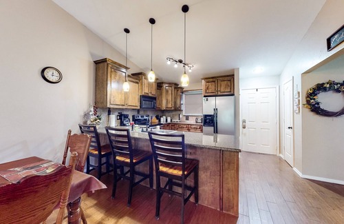 Inside the condo, you’ll find traditional furnishings, an open layout, and abundant natural light. The chef will love the well-equipped kitchen, boasting a full suite of appliances and plenty of counter space, and the family will love sitting down for a meal together at the large dining table. Unwind with some TV in the inviting living area or either bedroom, and toss a load of laundry in the convenient washer/dryer for tomorrow. End the day as you began, back out on the balcony - but this time, toasting your good luck at booking the perfect Branson getaway.