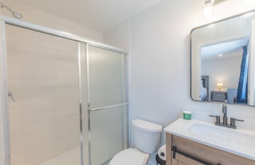 Each bathroom is equipped with modern fixtures, a bathtub and shower combo, and essential amenities like hair dryers. The home's thoughtful features like air conditioning, heating, high-speed WiFi, washer, and iron ensure you have all the comforts of home, and more.