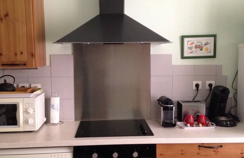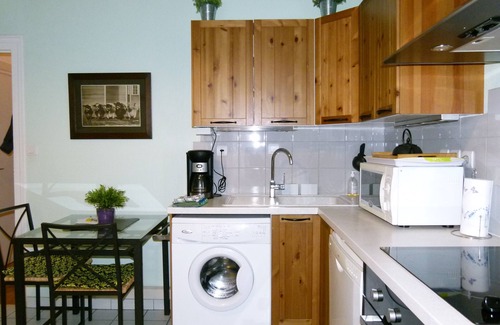 A big kitchen fully equipped with a dish-washer, washing and dry machine, oven, refigerator-freezer, vitro ceramic burners, a micro-wave oven, an electric water heater, a coffee machine, a Nespresso machine, a toaster, etc.