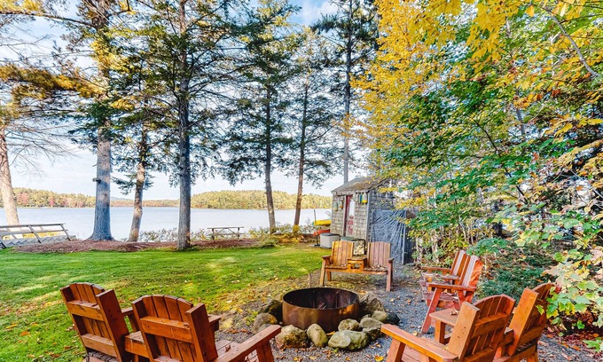 Amenities include free WiFi, four flatscreen TVs, a full-size washer and dryer, a dishwasher, firewood, and a dock. Kayaks are also provided. The larger cities of Rockland and Camden are within a 15-minute drive and Union is an excellent waypoint to start day trips from.