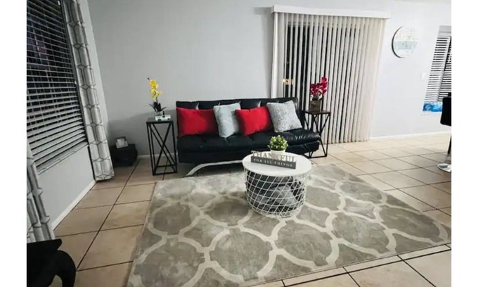Relax with the whole family at this peaceful place to stay. Furnished to give you comfort while you enjoy your stay. Quiet neighborhood & about a 7 minute drive to the beach. Washer and Dryer in the unit. Beach chairs, beach umbrella and beach toys available for your use. Yoga mats and some exercise dumbbells available for use. Couch is a futon so you can open it up and bedding available for two additional people to sleep on it. Also an additional cot is available for one person to use.