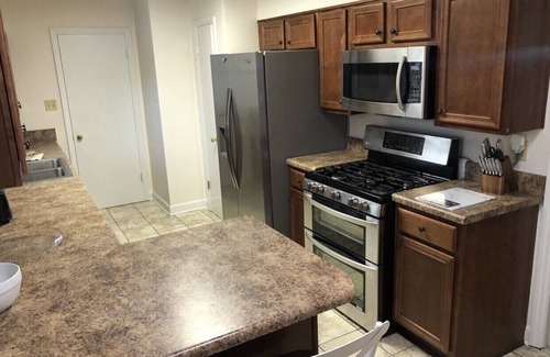This home is in the highly sought after East Memphis. It is a beautiful, safe neighborhood with large trees and gorgeous homes and yards. It’s a great place to take a walk and explore. It has a 2 car garage, fully enclosed privacy fence,and a large yard with a pool to enjoy in the summer. There is also a fire pit and firewood to use during the cooler months. There is a gas fireplace in the sunroom which makes it a cozy space to curl up with some coffee and a book. In the kitchen you will find a coffee bar with a Keurig and regular pot and I also supply some coffee, sugar, and creamers. The fully equipped kitchen makes for a nice night in cooking meals with family. There are 4 very large smart TVs to catch a game or watch movies and relax. It’s a comfortable space that makes you feel at home. The central location makes getting anywhere in Memphis quick and convenient. Plenty of shopping and fine or casual dining within a mile or two. Some within walking distance. Keypad entry for easy access and no keys to keep up with.