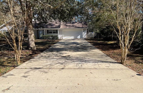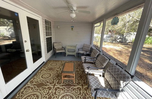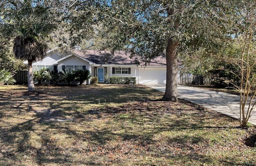 This comfortable suburban home has a large driveway for multiple vehicles and spacious living area with a kitchen and dining area connected to the main living space. Screened in porch opens out to a large backyard with a tall privacy fence on both sides. Each room can sleep two individuals with a fold out sofa as another sleep space for two more. House has tile and vinyl floors throughout. Located off the same exit as Jekyll Island and just a few miles away from the entrance. This home offers comfortable living for guests who want to experience the Golden Isles, Jekyll Island and St. Simons Island without breaking the bank. Nearby tidal rivers offer fishing and kayaking opportunities while the beaches aren't far away. Located in a quiet residential area that allows for peace and tranquility without much road traffic.