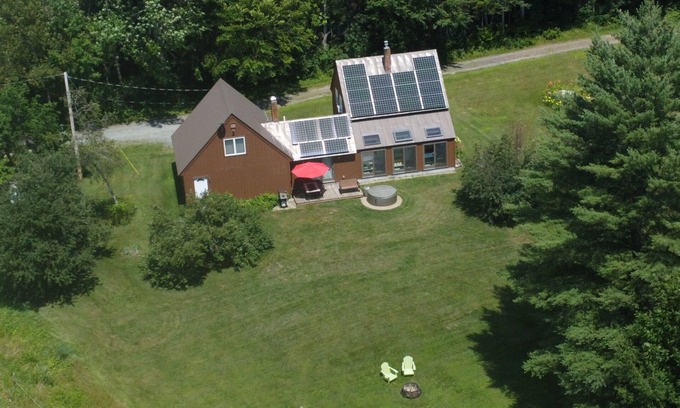 This property is located in a remote and beautiful area of Vermont’s Northeast Kingdom. The house is on 140 acres of fields and forest. There are 2.5 miles of private walking/snow shoeing trails in the woods. A large, mowed area around the house provides space for grilling, outdoor dining, fire pit and games. The outdoor hot tub (emptied and refilled after each stay) is heated to 104 degrees year-round. This property is easily accessed from Route 2 and is on a well-maintained dirt road.