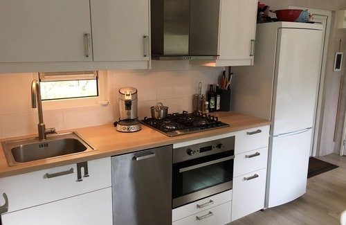 Outside you will find a lovely large wooden (partially) covered veranda of 30 m2 with a garden table with 6 chairs, a large gas BBQ and a washing machine. Because of the size of the garden you always have plenty of sun and shade spots throughout the day.