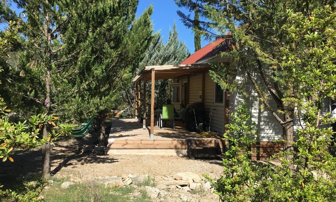 Via Route du Soleil you drive inland from Montpellier, this beautiful area consists largely of hills with forests and many vineyards. After half an hour's drive you will arrive in the middle of beautiful nature at the Parc le Duc holiday park in Vacquières (Languedoc-Roussillon / Herault), where our holiday chalet is located in a large garden of almost 500 m2 with its own parking space.