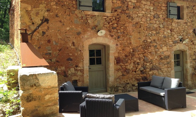 With its shaded terraces, its oak grove and a magnificent view of the Petit Luberon, this old ocher factory restored with authenticity constitutes an exceptional setting for your holidays.