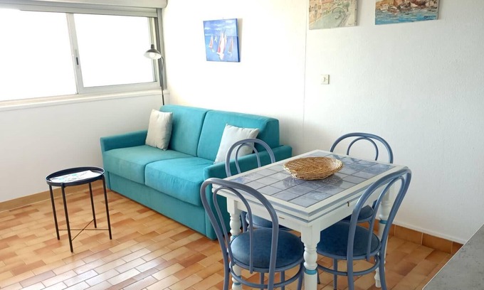 I am pleased to welcome you in my charming 26 square meters studio, located on the 2nd floor without elevator, ready to receive 4 people and located in Agde. You will stay ideally in front of the Herault, 13 minutes walk from the beach of Tamarissière: you can reach the Grau d'Agde by boat, the boatmen will be happy to take you around!
