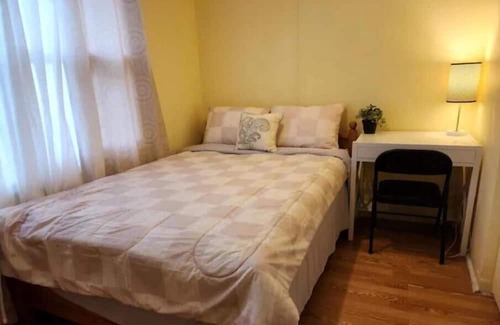 There's a share backyard, patio, bathtub, living room smart TV with Disney plus, Hulu, Netflix, etc, dinning room, almost all the essentials you need in the kitchen, 2 full bathrooms, laundry in basement, etc.