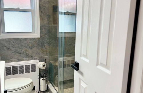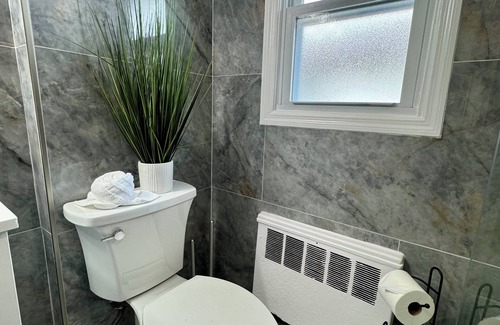 Step into an elegant and newly renovated bathroom, with complementary shampoo, conditioner, body wash, toothpaste, extra toilet paper, hair dryer and towels.